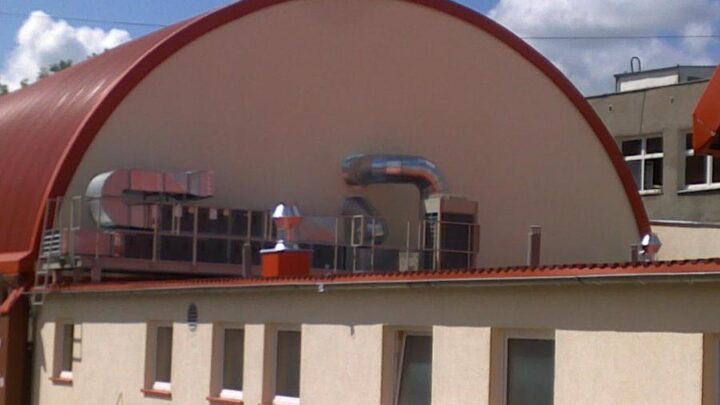 Realizacja wentylacji, klimatyzacji i ogrzewania dwóch sal sportowych przy gimnazjum w oparciu o centrale wentylacyjne nawiewno-wywiewne z odzyskiem ciepła firmy VTS współpracujące na potrzeby klimatyzacji z agregatami freonowymi firmy DAIKIN. Realizujemy również dla inwestora serwis instalacji wentylacji mechanicznych oraz klimatyzacji